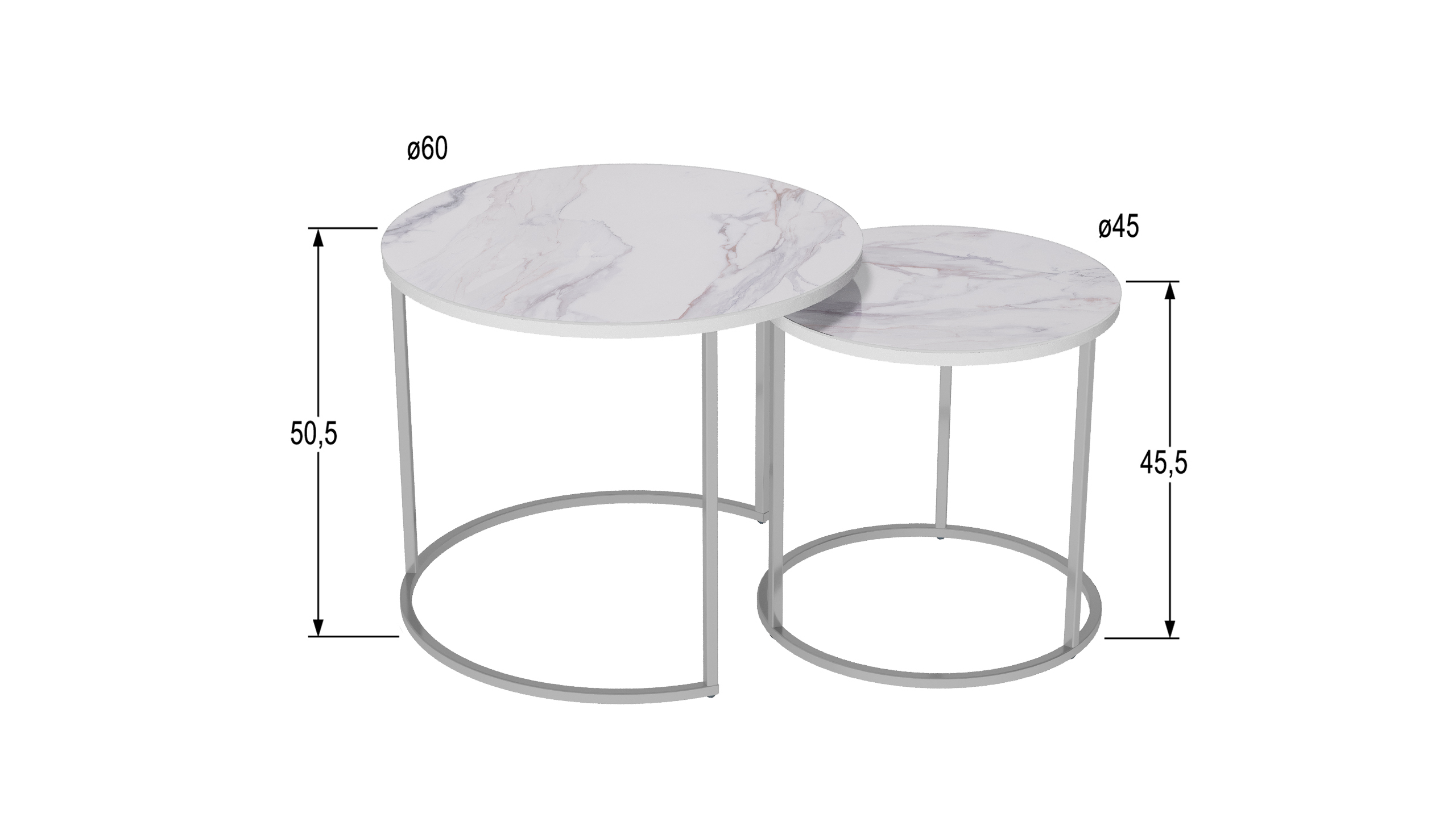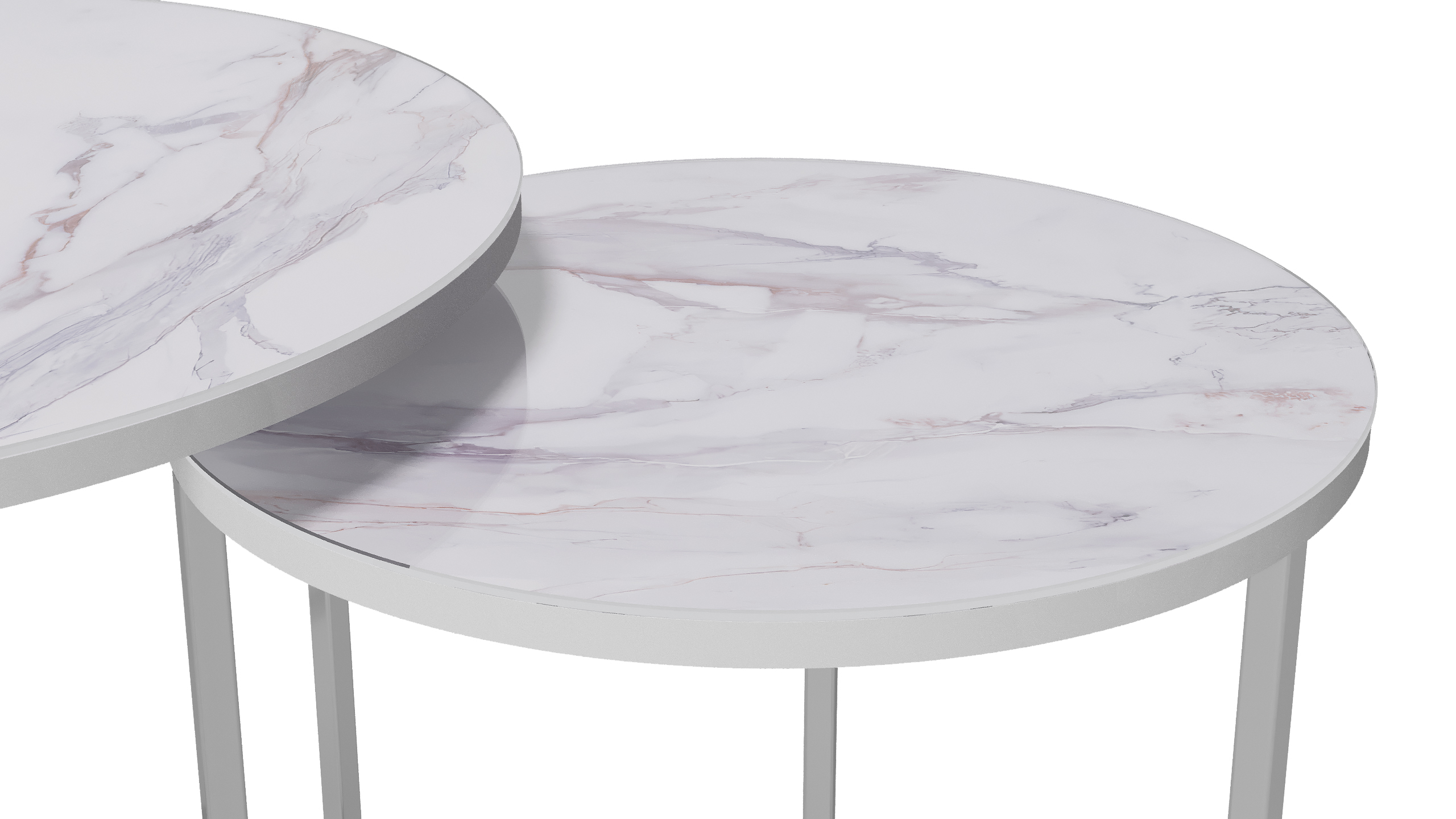 Комплект столов журнальных «Стелла» представляет собой гармоничную и функциональную композицию из двух столиков разной высоты и диаметра, расположенных один над другим. Дизайнерский прием - способность разместить данную модель любым комфортным способом или использовать каждый из них по отдельности. Стеклянная столешница с УФ-печатью с точностью передает естественную красоту рисунка. Основание полностью изготовлено из прочного металла, а черный цвет опор лаконичен и безупречен в своем блестящем металлическом исполнении. Благодаря своей строгой элегантности и универсальности журнальные столики легко комбинируются с мебелью в современном стиле. Продукция поставляется в разобранном виде, упакованная в гофрокартон. В комплект входит вся необходимая фурнитура и удобная инструкция для сборки. Максимальная нагрузка до 40 кг