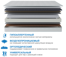 В матрасе осуществляется необходимая циркуляция воздуха, а все материалы, используемые в нем, являются гипоаллергенными.