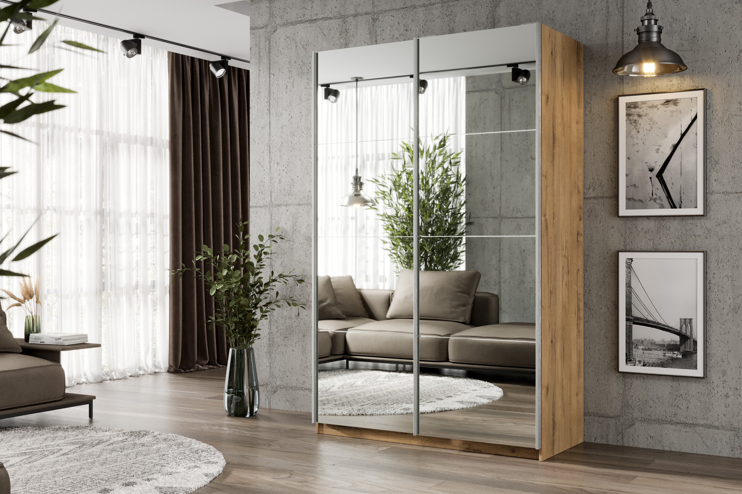 Шкаф-купе Smart 1222 2х дверный (фасады зеркало) профиль серебро (Бунратти)