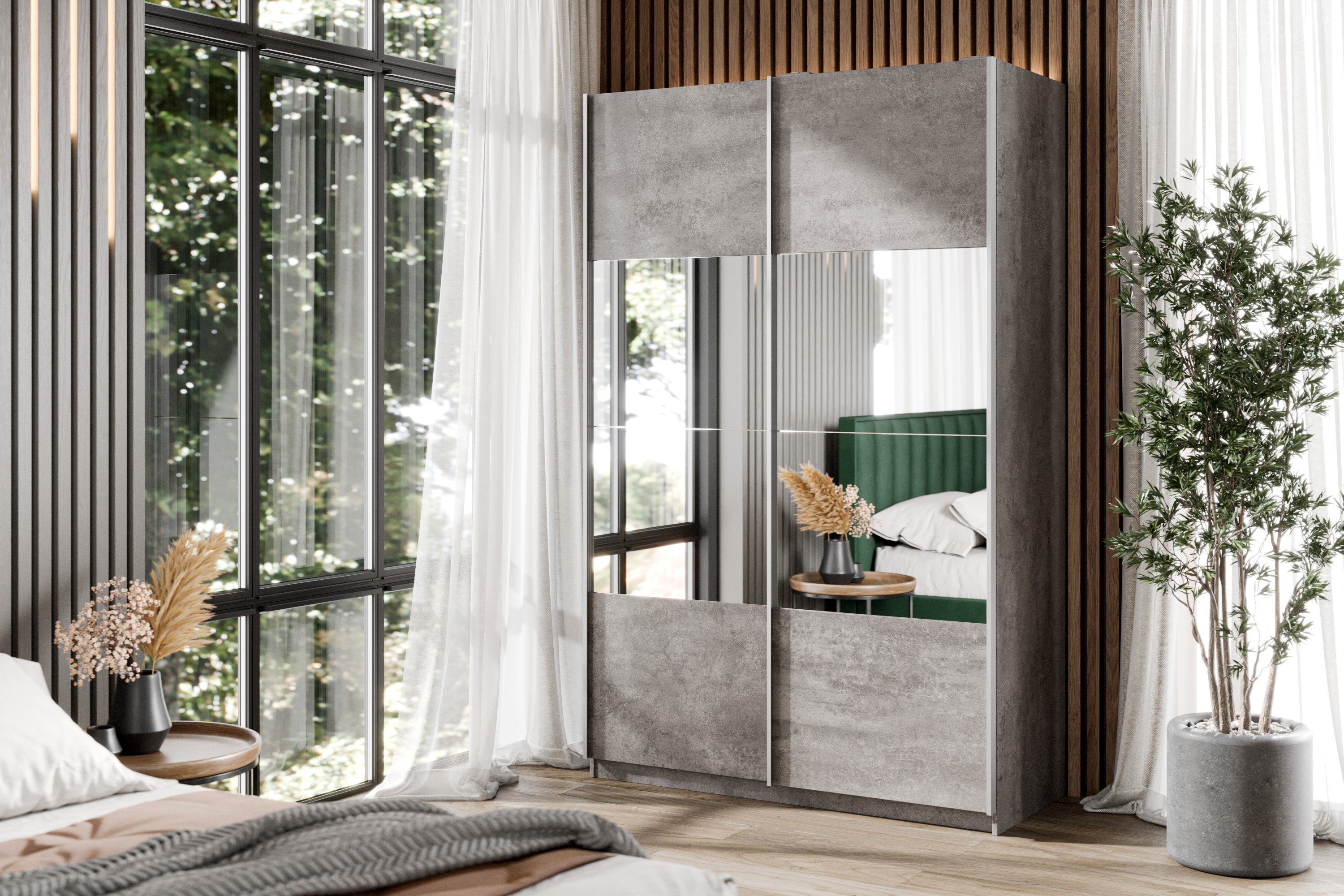 Шкаф-купе Smart 1222 2х дверный (фасады ЛДСП/зеркало) профиль серебро (Бетон)