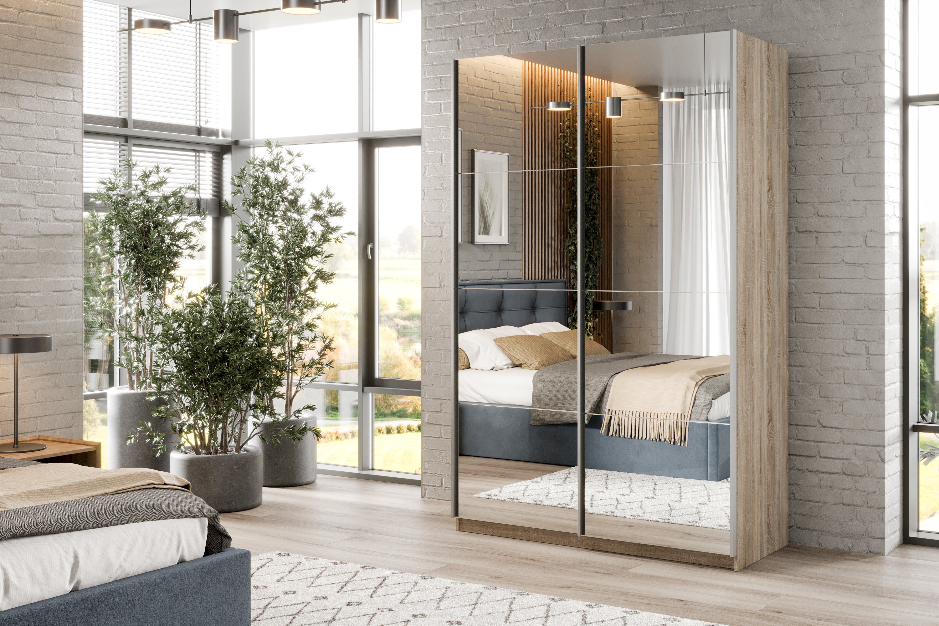 Шкаф-купе Smart 1424 2х дверный (фасады зеркало) профиль серебро (Дуб сонома)