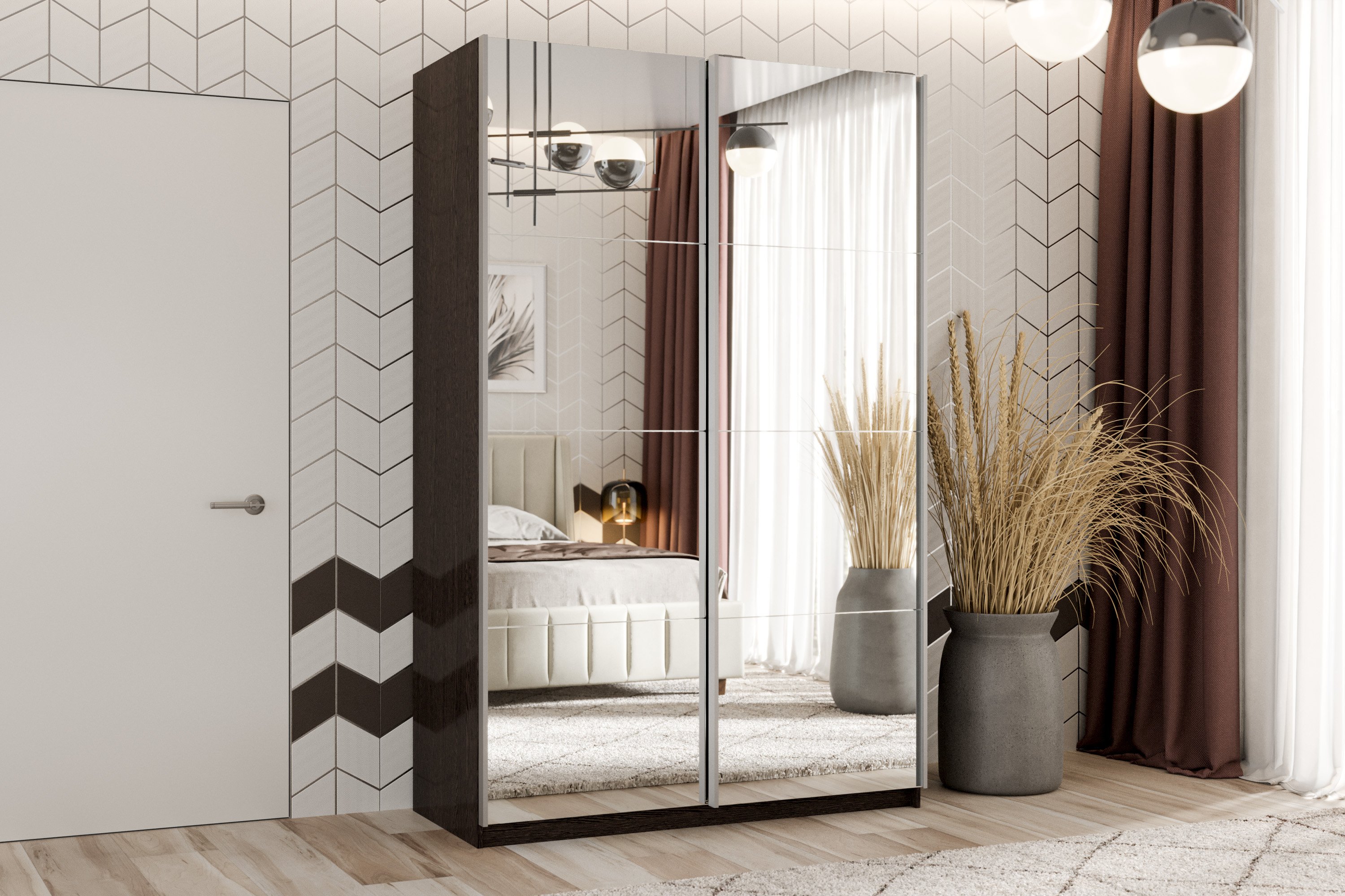 Шкаф-купе Smart 1424 2х дверный (фасады зеркало) профиль серебро (Венге)