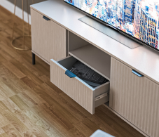 Качественная фурнитура со встроенными доводчиками позволяет плавно открывать, закрывать двери и ящики. Направляющие шариковые полного выдвижения.
