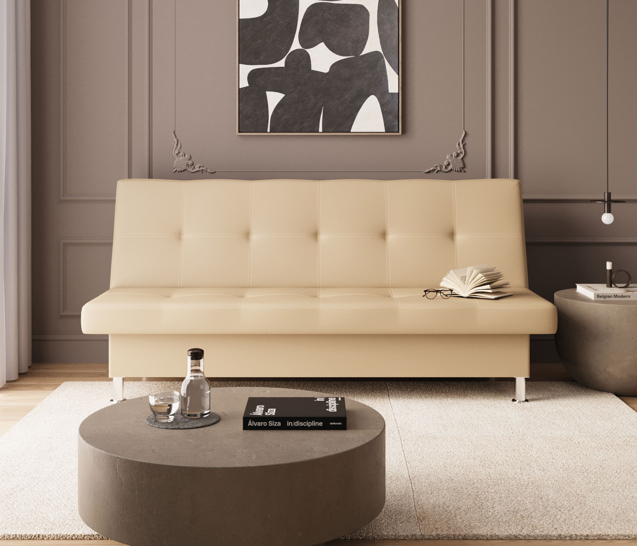 Диван Бомонд прекрасно впишется в интерьер любой комнаты, а также привнесет долгожданный комфорт и тепло. Теперь вы сможете удобно расположиться и спокойно наслаждаться чтением увлекательной книги, просмотром телевизора или разговором с близким человеком. Благодаря простому механизму раскладки клик-кляк, вы сможете трансформировать диван в небольшую, но достаточно комфортную кровать, которая позволит хорошенько выспаться и набраться сил. Вместительный ящик пригодится для бережного хранения постельного белья.