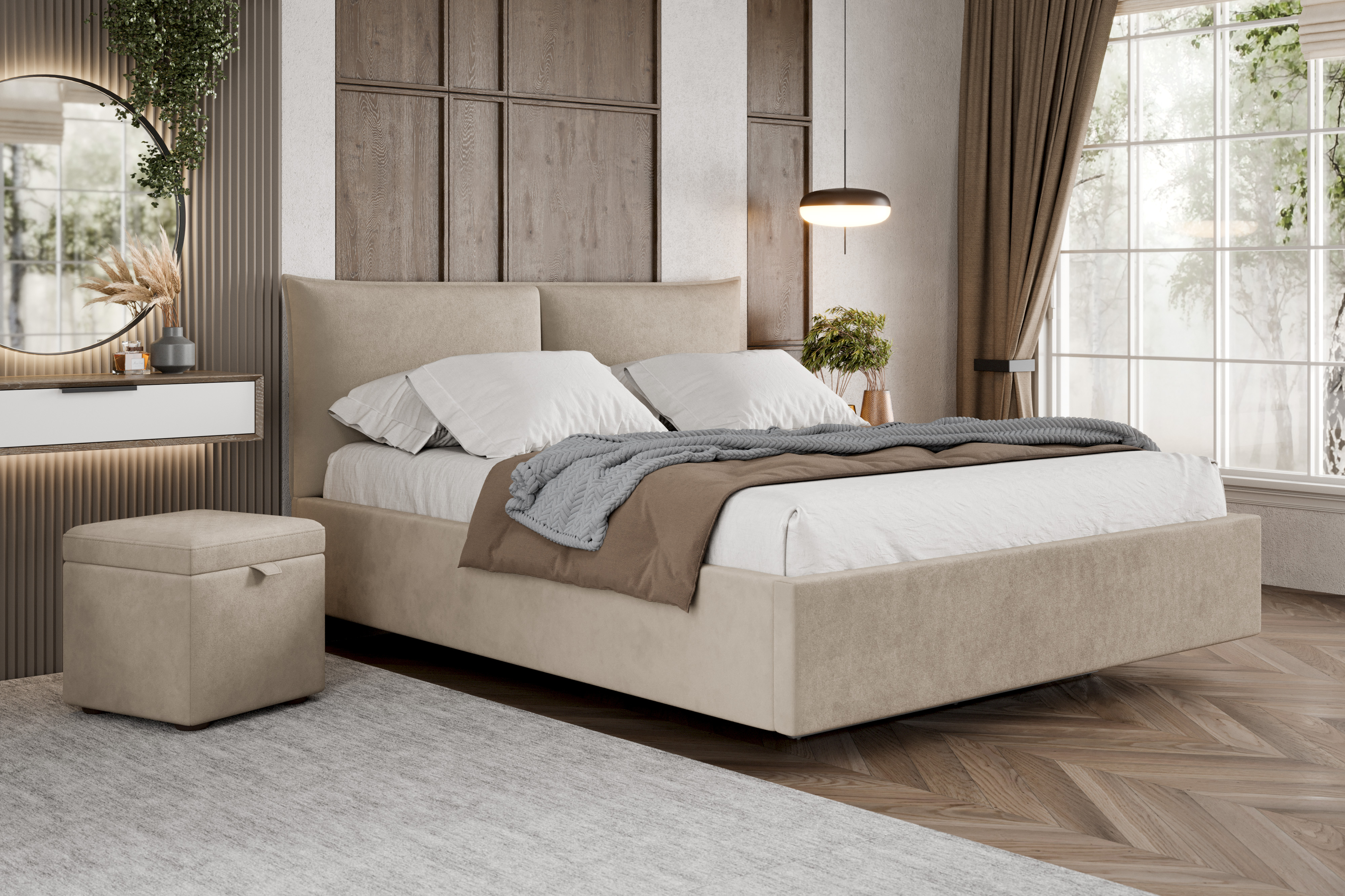Невесомый дизайн кровати Премьера с мягким изголовьем так и притягивает взгляд!