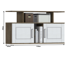 Габаритные размеры – ширина 119 см, высота 65 см и глубина 29 см, далеки от компактных. Полка состоит из нескольких вместительных отделений, два из которых оснащены дверцами.