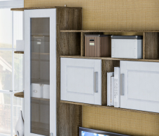 Выполнена полка из современного и прочного материала. Внешняя отделка комбинированная. Корпус выполнен из КДСП в цвете «Дуб Сонома Трюфель». А фасадная поверхность – из МДФ в цвете «Сандал Белый».