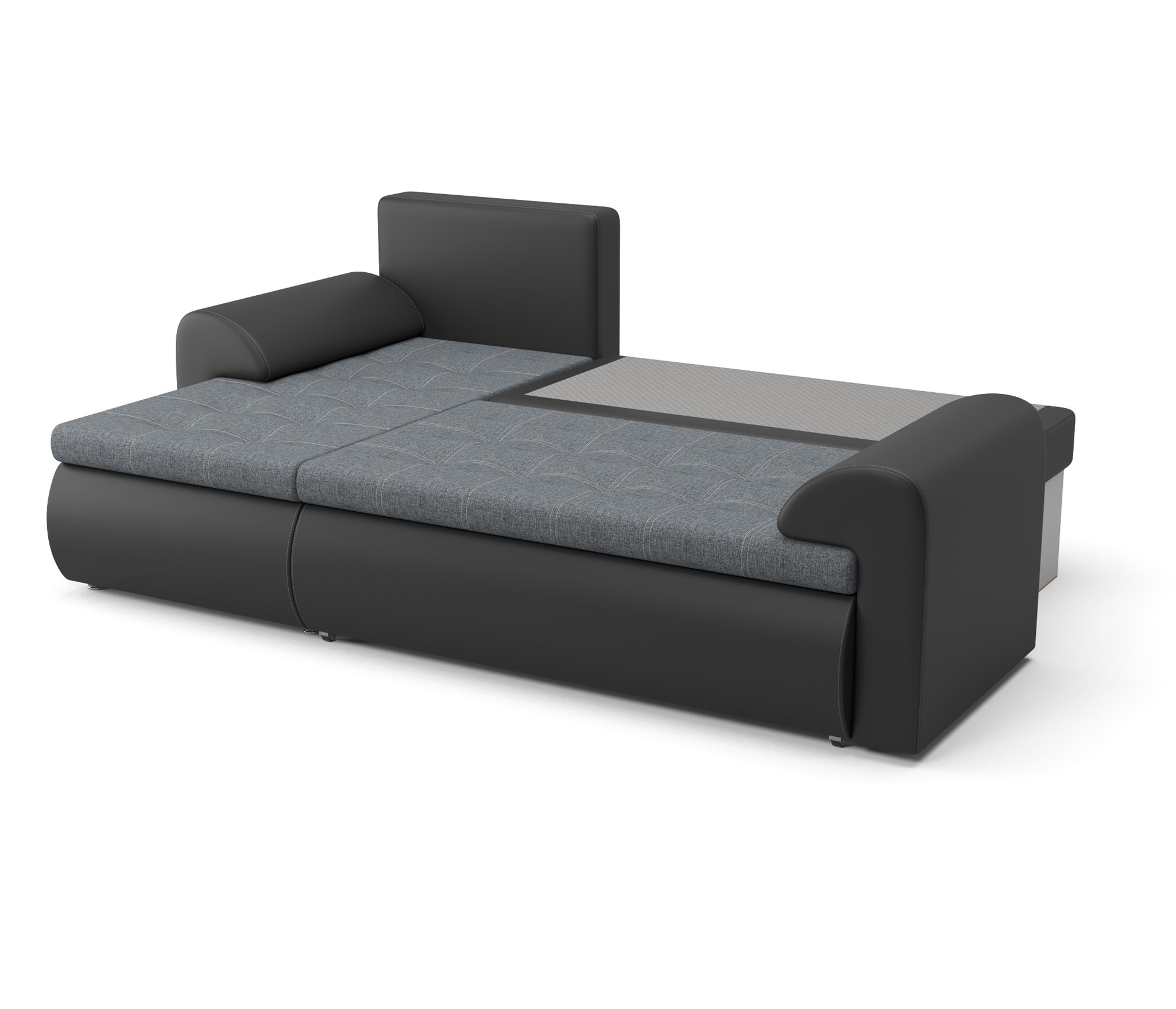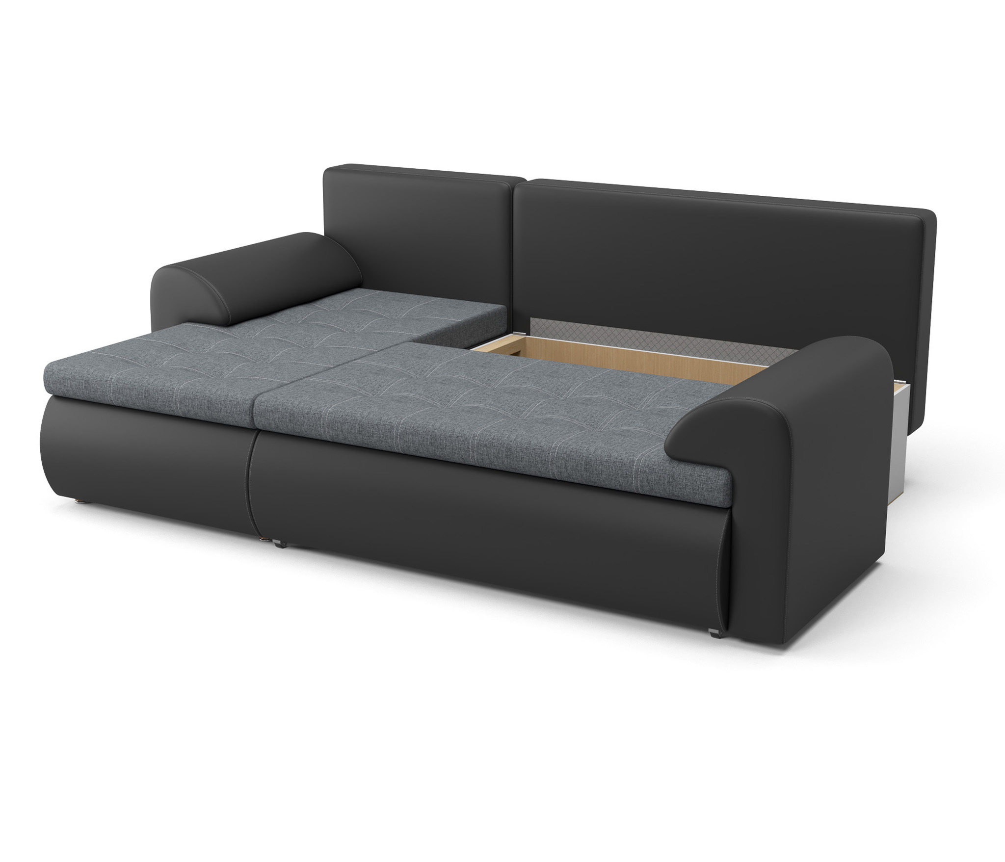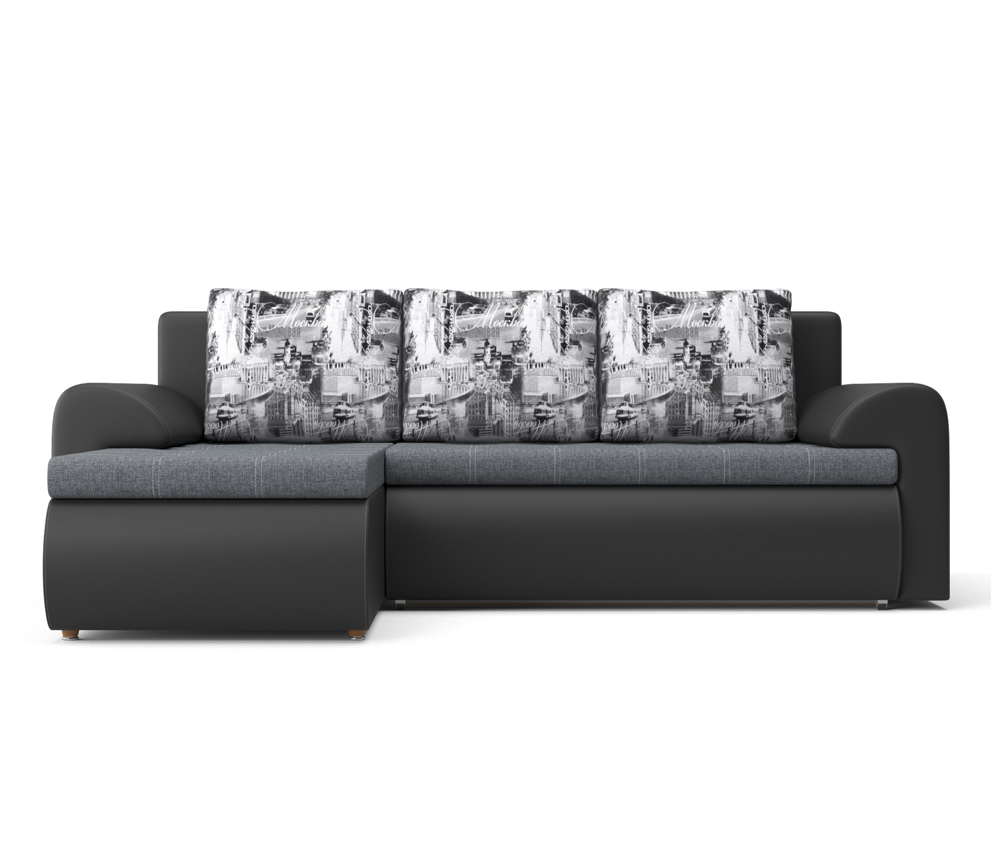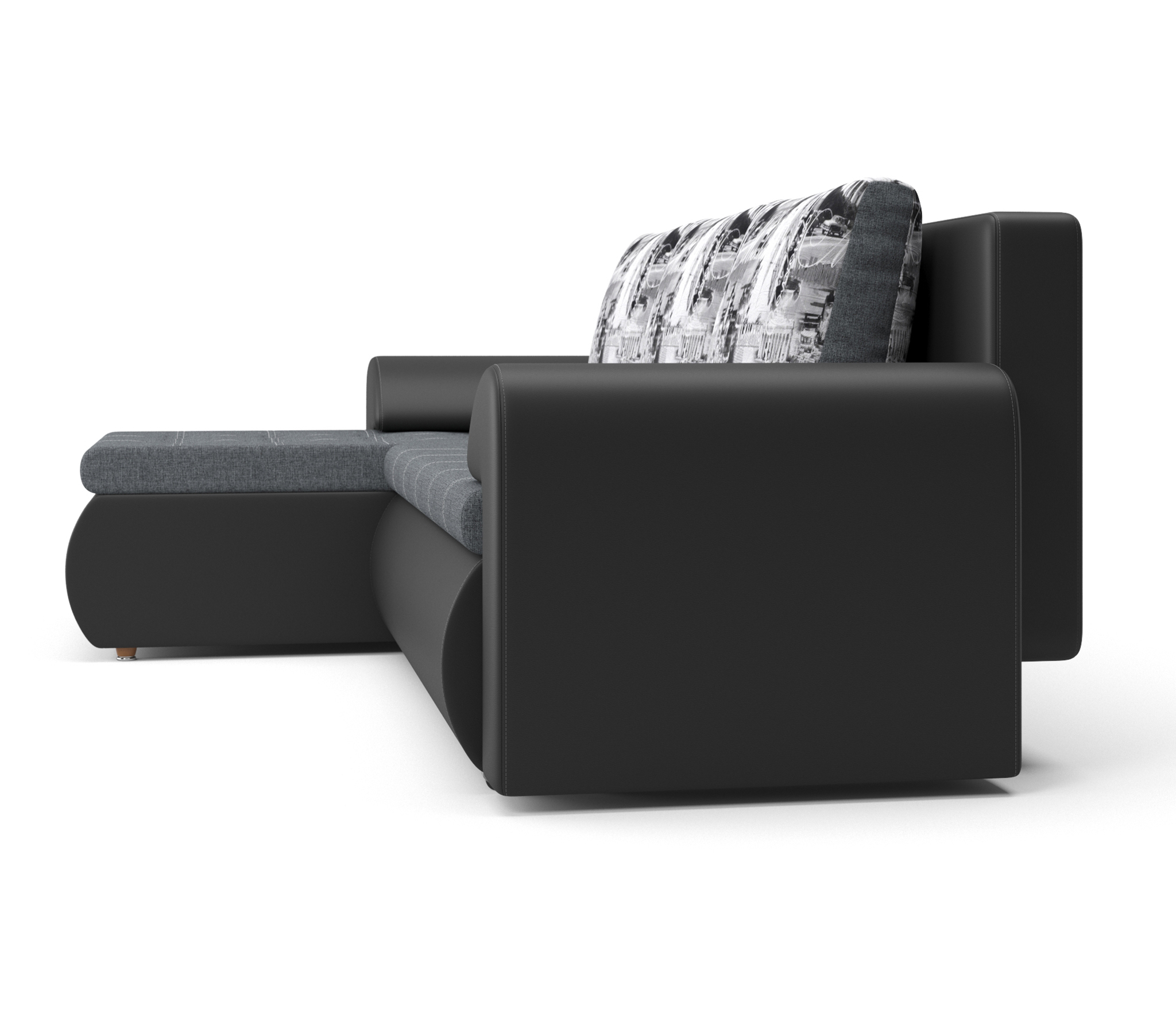 Угловой диван Цезарь (левый) рогожка/экокожа (Черный/ Серый)