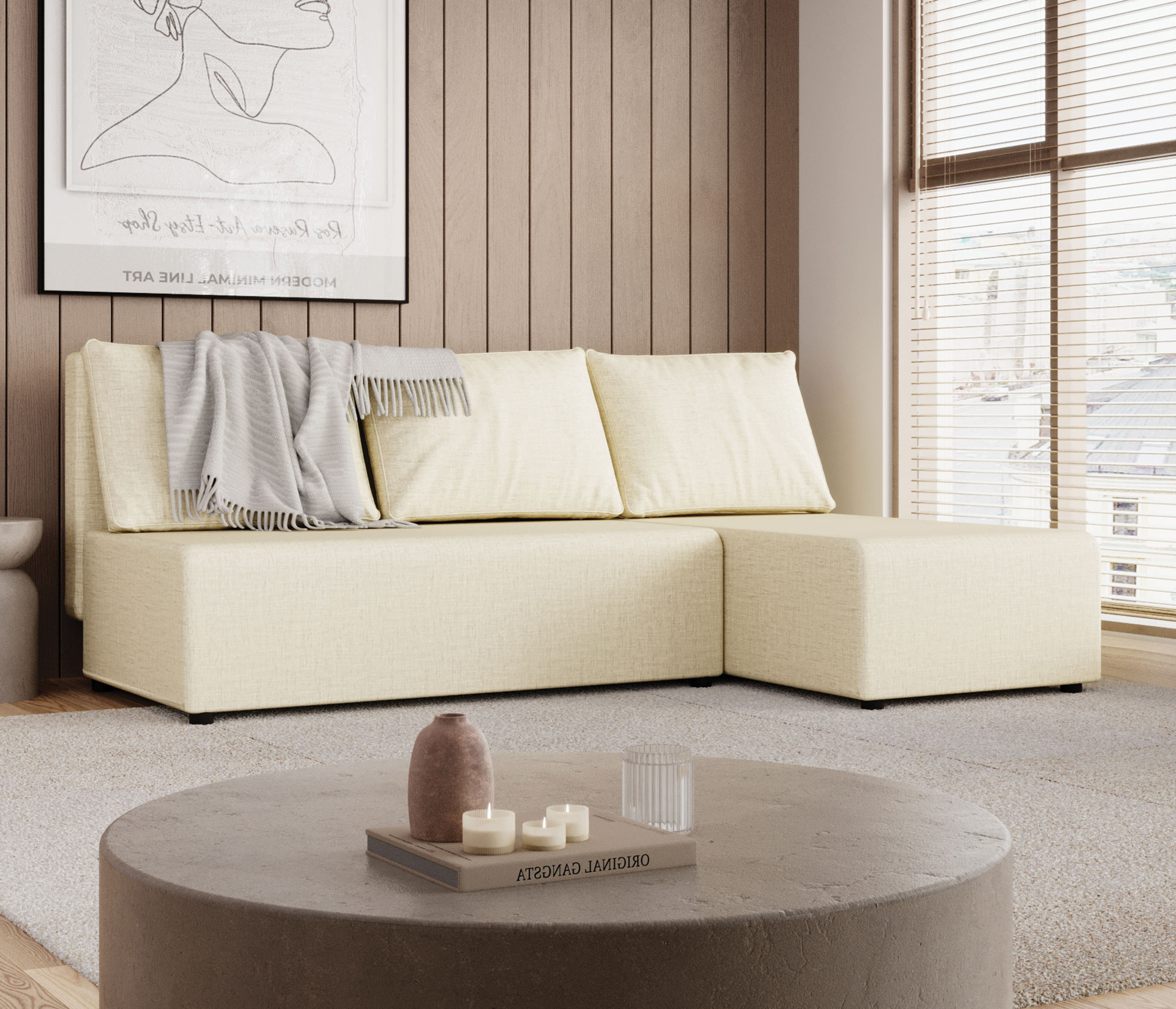 Диван-кровать Комо угловой, рогожка (Бежевый)