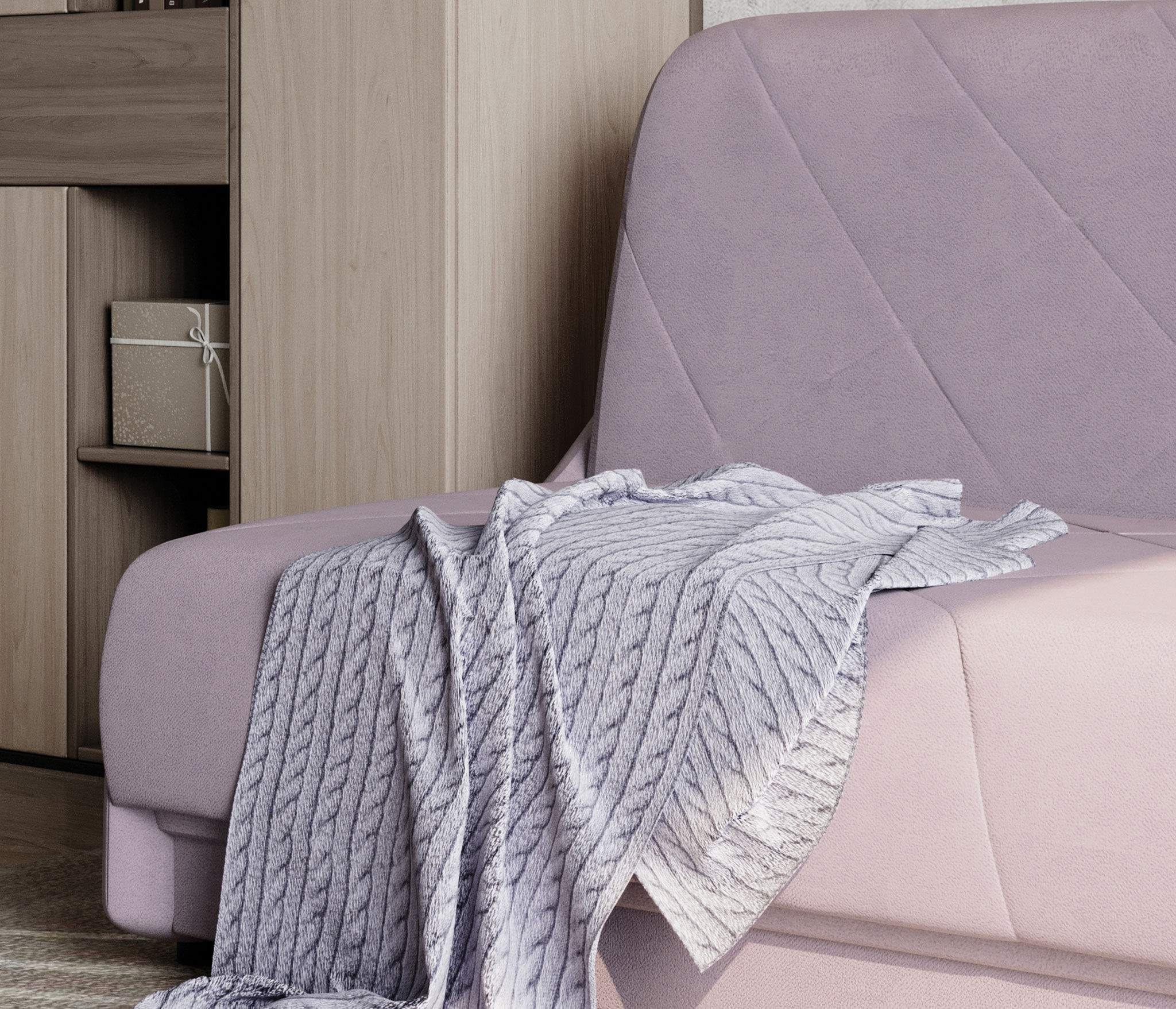 Ткань чехла простегана на периотеке, что придает дополнительный объем и мягкость.
