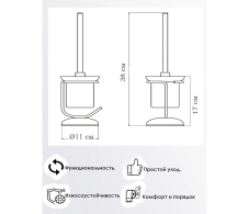 Ершик для унитаза незаменимый помощник для поддержания чистоты туалета. Аксессуар выполнен в классическом стиле, отлично подойдет для туалетной комнаты и дополнит Ваш интерьер. Гигиеничность, экономия места и удобство использования. Изделие монтируется к стене при помощи надежного крепежа.