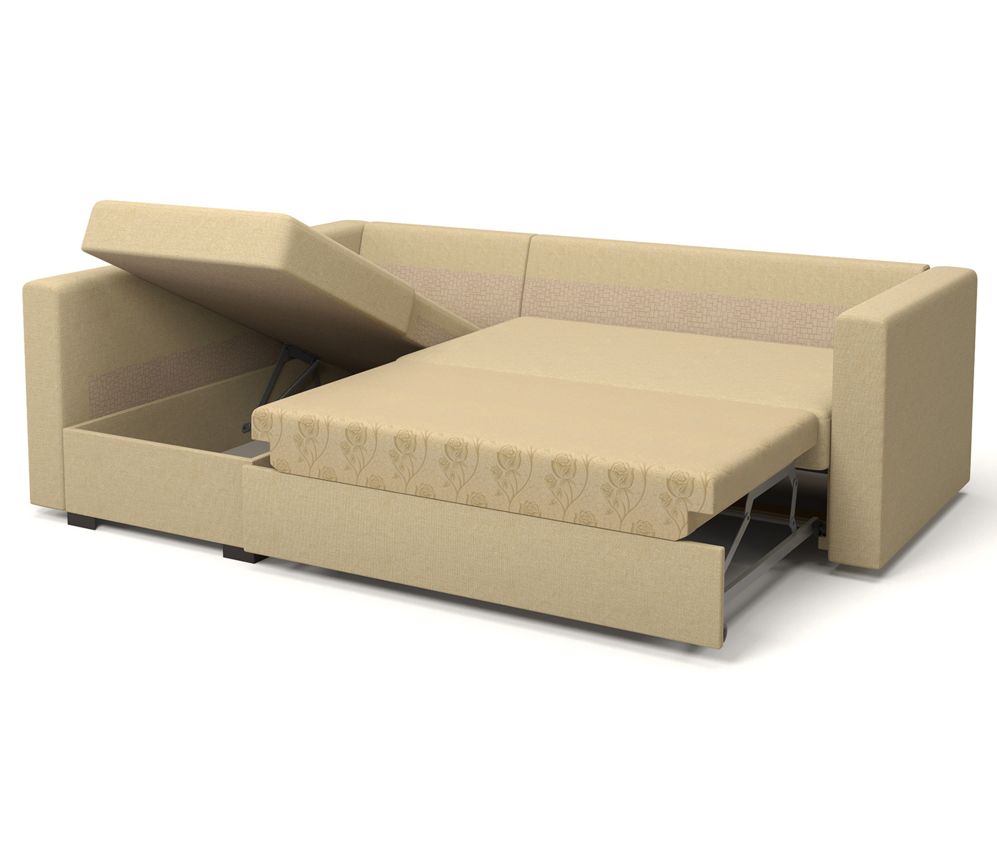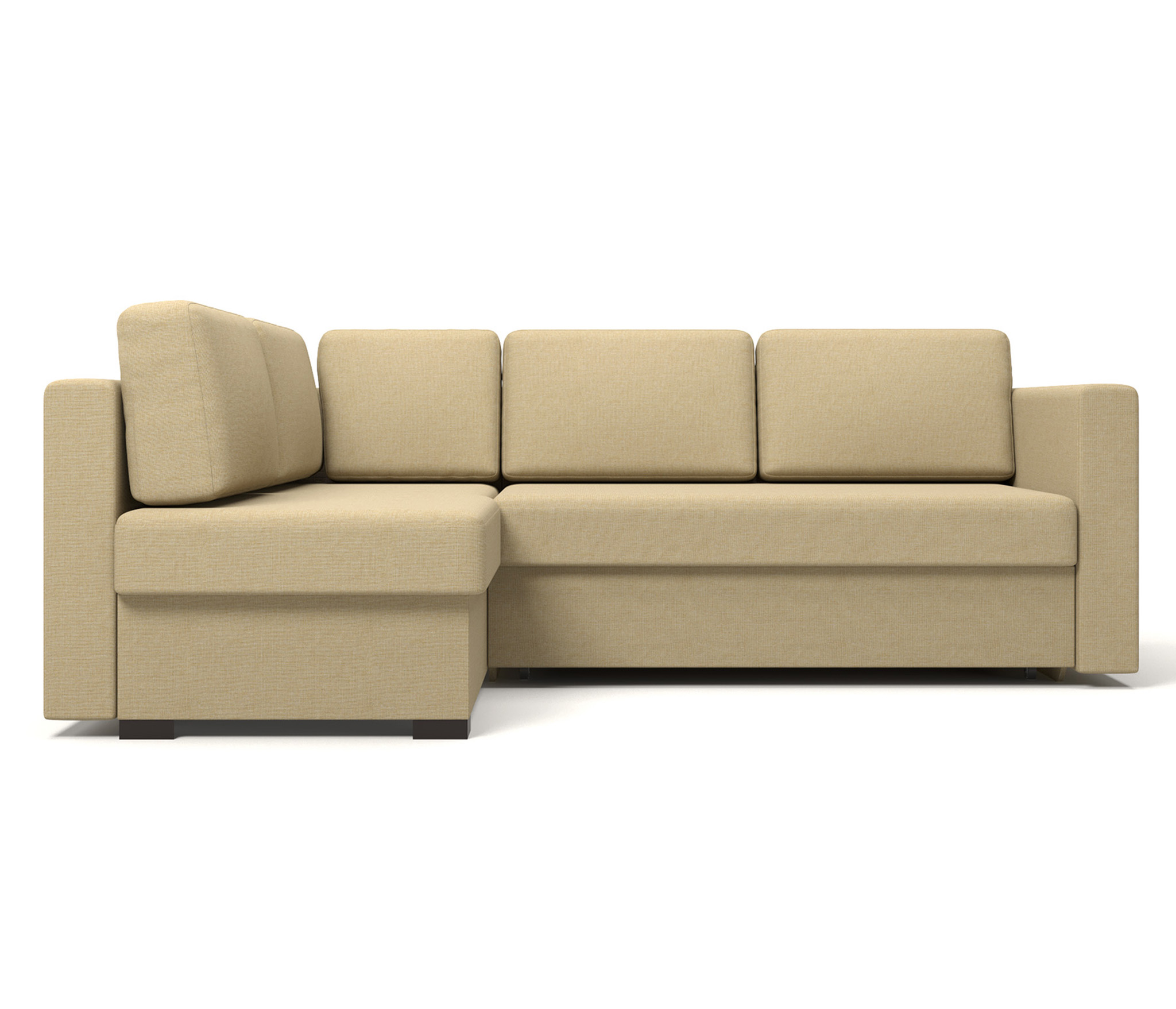 Каркас дивана «Джессика» выполнен из бруса и высокопрочной ЛДСП – ламинированной древесно-стружечной плиты, надежно удерживающей крепежные элементы.Мягкие части модели созданы на основе современного материала ППУ (пенополиуритана), полученного из синтетических полимеров и обработанного антигрибковым и антибактериальным составами. Материал долговечен, экологически безопасен, быстро восстанавливается после смятия, не плесневеет, не впитывает и не выделяет пыль. Обивка из рогожки приятна на ощупь, устойчива к разрывам и истиранию, не мнется, не растягивается и легко чистится.Простоту эксплуатации этого дивана обеспечивает выкатной механизм «Дельфин», позволяющий двумя движениями создать ровное и упругое спальное место размером 1400 х 1900 мм – достаточно выкатить вперед основание, а в освободившуюся нишу опустить спинку. Поэтому можно купить угловой диван «Джесика» для ежедневного пользования, а лаконичный дизайн и нейтральная цветовая гамма снимают ограничения при выборе дополнительных элементов интерьера – журнального столика, кресел, стеллажей и элементов декора.