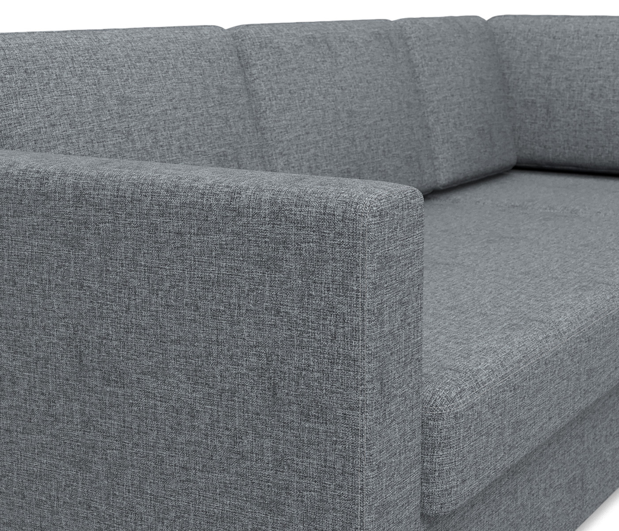 Каркас дивана «Джессика» выполнен из бруса и высокопрочной ЛДСП – ламинированной древесно-стружечной плиты, надежно удерживающей крепежные элементы. Мягкие части модели созданы на основе современного материала ППУ (пенополиуритана), полученного из синтетических полимеров и обработанного антигрибковым и антибактериальным составами. Материал долговечен, экологически безопасен, быстро восстанавливается после смятия, не плесневеет, не впитывает и не выделяет пыль. Обивка из рогожки приятна на ощупь, устойчива к разрывам и истиранию, не мнется, не растягивается и легко чистится.Простоту эксплуатации этого дивана обеспечивает выкатной механизм «Дельфин», позволяющий двумя движениями создать ровное и упругое спальное место размером 1400 х 1900 мм – достаточно выкатить вперед основание, а в освободившуюся нишу опустить спинку. Поэтому можно купить угловой диван «Джесика» для ежедневного пользования, а лаконичный дизайн и нейтральная цветовая гамма снимают ограничения при выборе дополнительных элементов интерьера – журнального столика, кресел, стеллажей и элементов декора.
