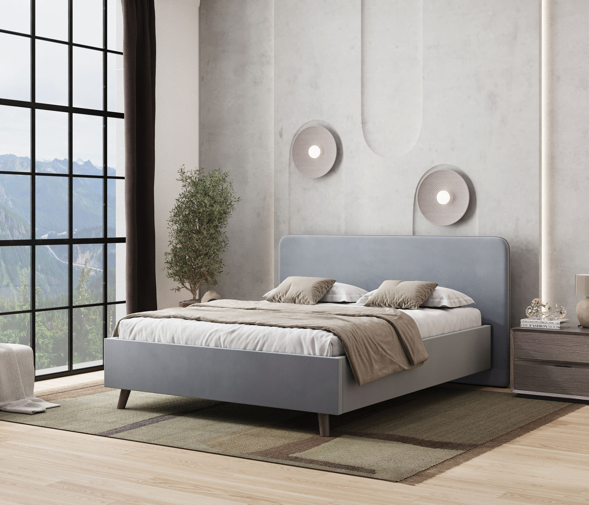 Кровать Ванесса (140 х 200), Велюр (Светло-серый)